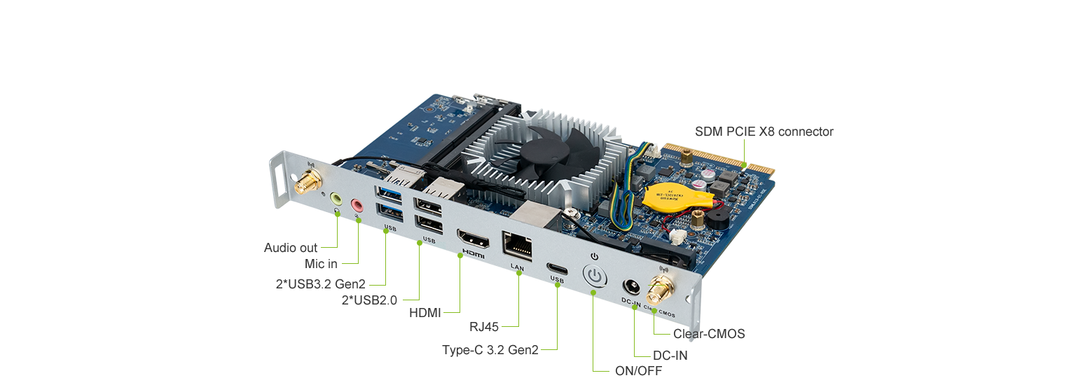 優秀的視頻顯示,杰和科技SDM-L613擁有1個HDMI (7680 x 4320 @60 Hz)接口,支持60HZ刷新率,實現8k超清顯示,SDM(PCIE X8)可以傳輸 HDMI2.0 (4096 x 2304 @60 Hz)、DP1.2 (4096 x 2304 @60 Hz)、USB3.2 Gen1、UART、GSPI、I2C、PCIe 和 SYS_FAN 信號連接。