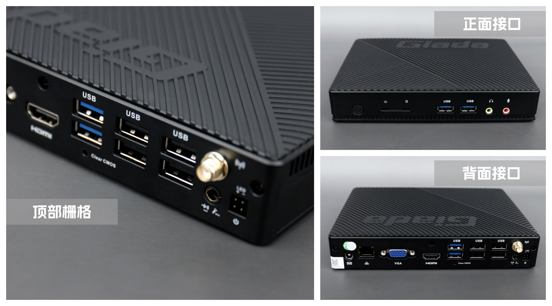 杰和桌面云終端Y-BOX S2采用全新外觀ID設計,主蓋采用黑色啞光柵格,頂部刻印杰和Giada品牌名,磨砂塑膠材質,高質感更輕盈。外包裝采用簡潔商務的風格設計,以杰和藍的配色作為點綴,內部采用嚴實防震的珍珠泡棉保護主機,同時,內部配備適配器、AC線、天線棒、螺絲包,滿足通用需求。