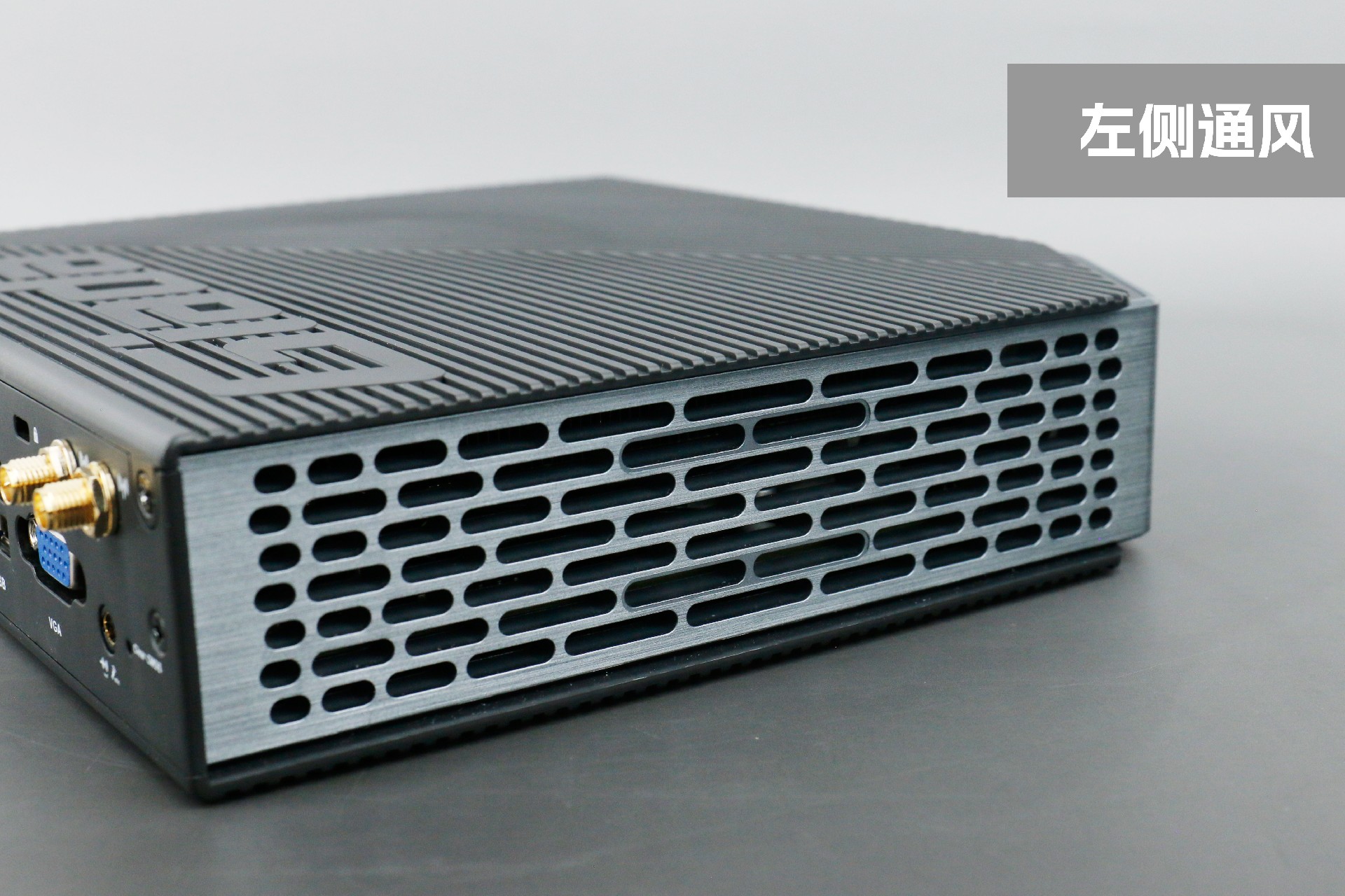 背面為1個DC-IN圓形電源接口,1個千兆網口RJ45,一個COM口,1個HDMI和1個VGA視頻接口,3個USB3.2 Gen2和3 x USB2.0接口,以及1個二合一音頻口及WiFi連接線,兼容全部主流外設,滿足更多應用拓展。