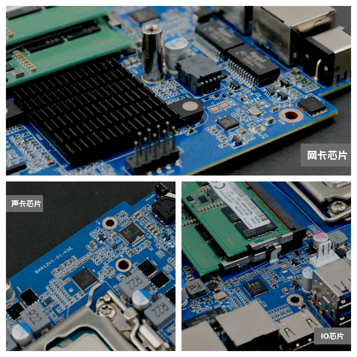 杰和桌面云終端Y-BOX P3主板采用的是6相供電,為H610入門級芯片組,CPU附近都分布了相關的芯片,在千兆網口附近有2個網卡芯片RTL 8111H,在主板背面的音頻接口附近可以看到1個經典的“小螃蟹”ALC897 聲卡芯片,聲卡芯片附近有一個I/0 芯片ITE8613E-LX。