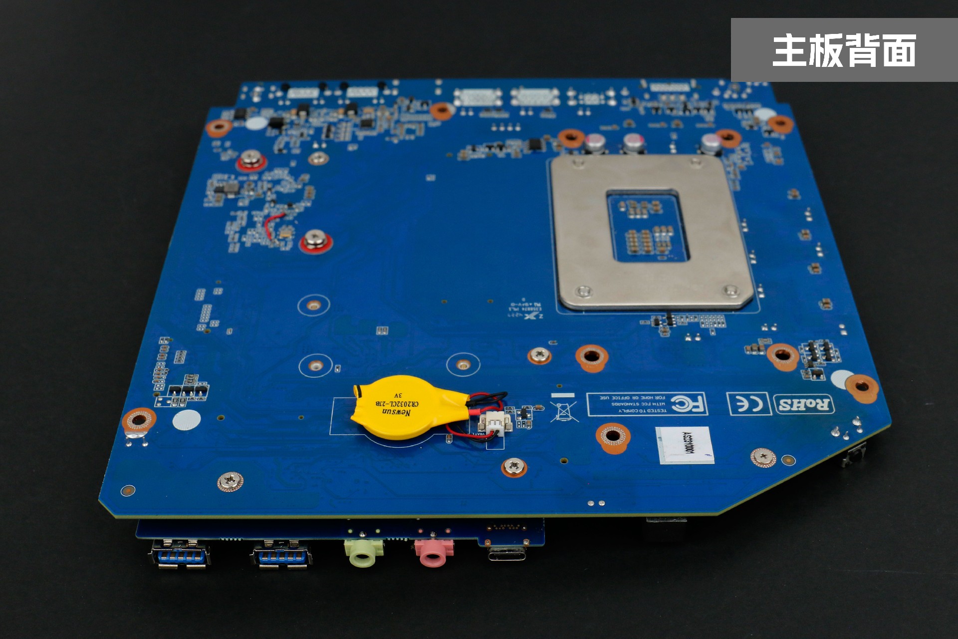 同時,高性能整機帶來的散熱問題,P3也從多處解決,采用被動散熱與主動散熱,主板處理器頂部安裝一體式鋁板,提高散熱強度;主板中部安裝強勁的渦輪風扇用于散熱,風吹到的區域有CPU插槽區域、芯片組區域、內存插槽及硬盤區;最后是主板在電阻上貼的導熱硅膠,通過導熱硅膠可以提供良好的熱傳導性和柔韌性,以適應不同形狀的散熱需求。