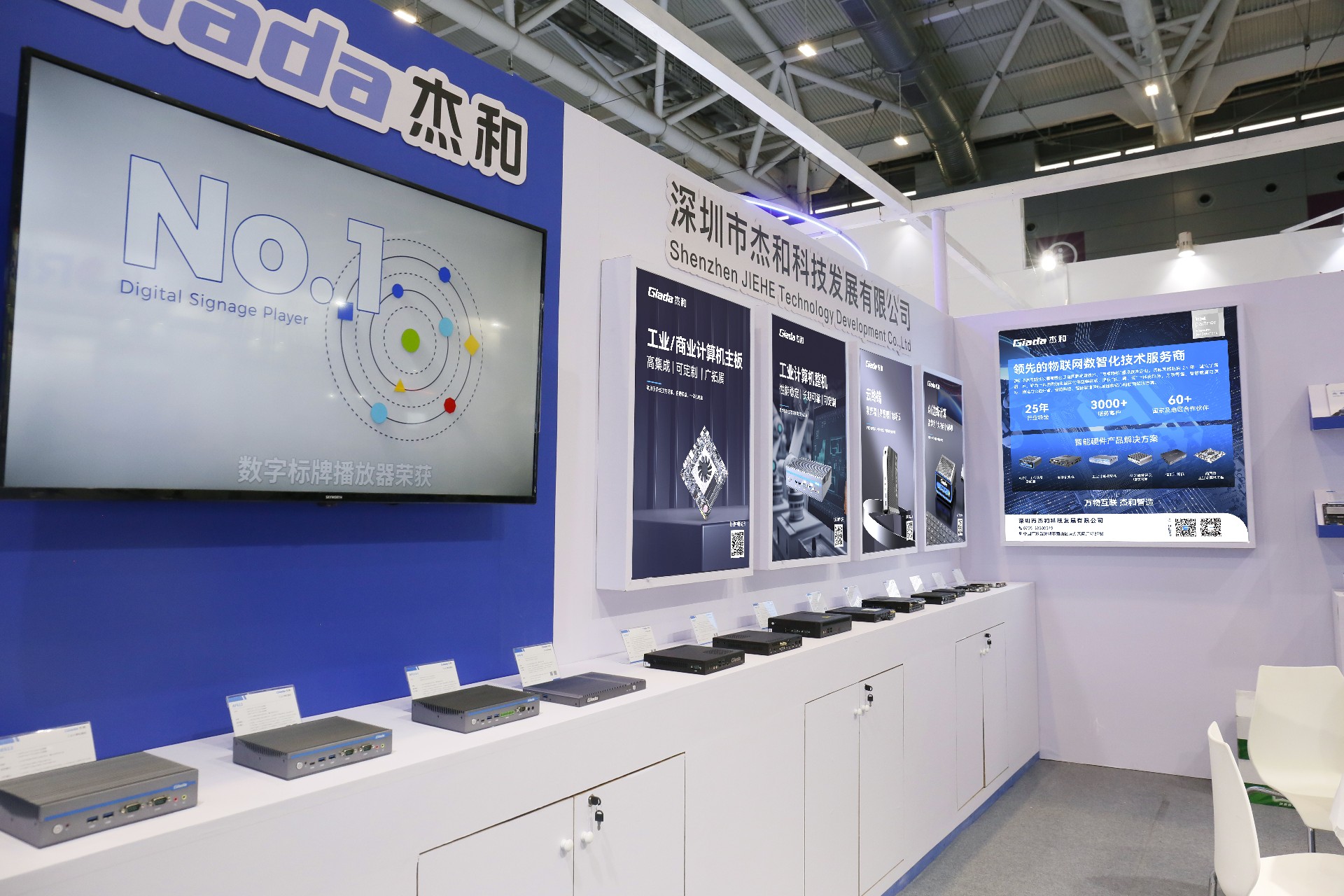 此次杰和科技帶來了30余款智能硬件產品,應用領域涵蓋工業制造、辦公、校園、戶外商顯等場景。并首次對外展示工作站WA814,以及CB4-X12-V0、CB4-812-V1等商用一體機主板,還有工業計算機整機、工業計算機主板等產品方案,憑借強大的產品性能和廣泛的應用領域吸引大批觀眾駐足,展位現場人流涌動,熱度爆棚!