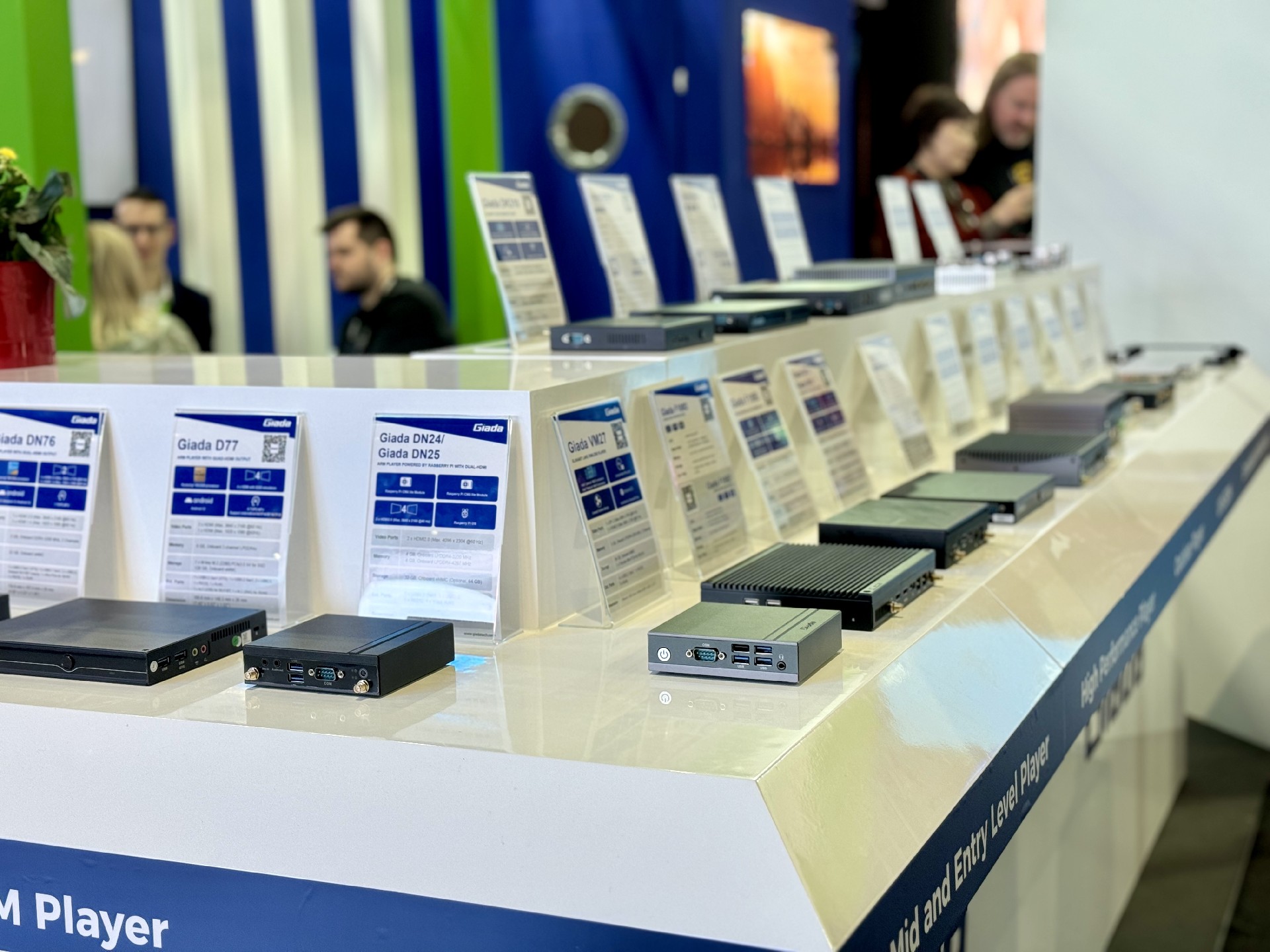 在ISE現場,杰和科技展示了最新的書本型媒體播放器F109D,它具有低功耗特性,適合于需要長時間運行且對能耗有嚴格要求的數字標牌和自助服務終端場景,書本大小的設計也意味著它便于安裝在空間有限的環境中,且無風扇設計,運行時完全靜音,非常適合奢侈品店、圖書館等對環境要求嚴苛的場所。