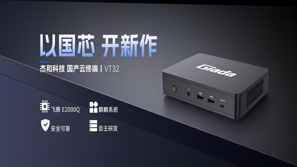 此前杰和科技已推出搭載飛騰E2000Q芯片的云終端VT32,并與麒麟V10操作系統深度適配,提供安全可信的解決方案。