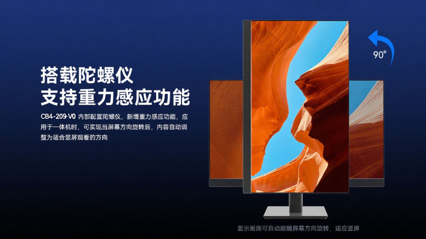 CB4-209-V0內置陀螺儀芯片、顯著優化一體機的交互體驗,當屏幕旋轉為豎屏狀態時,系統能夠自動識別并調整內容顯示方向,無需手動設置。