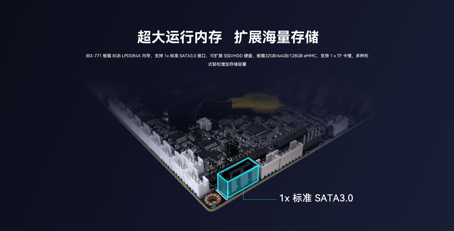 板載 HDMI、USB3.0、RS232 等全接口,直接連接各類外設,支持 SSD/TF 卡擴容存儲交易數據,預留 Mini PCIe 擴展位方便后期升級。
