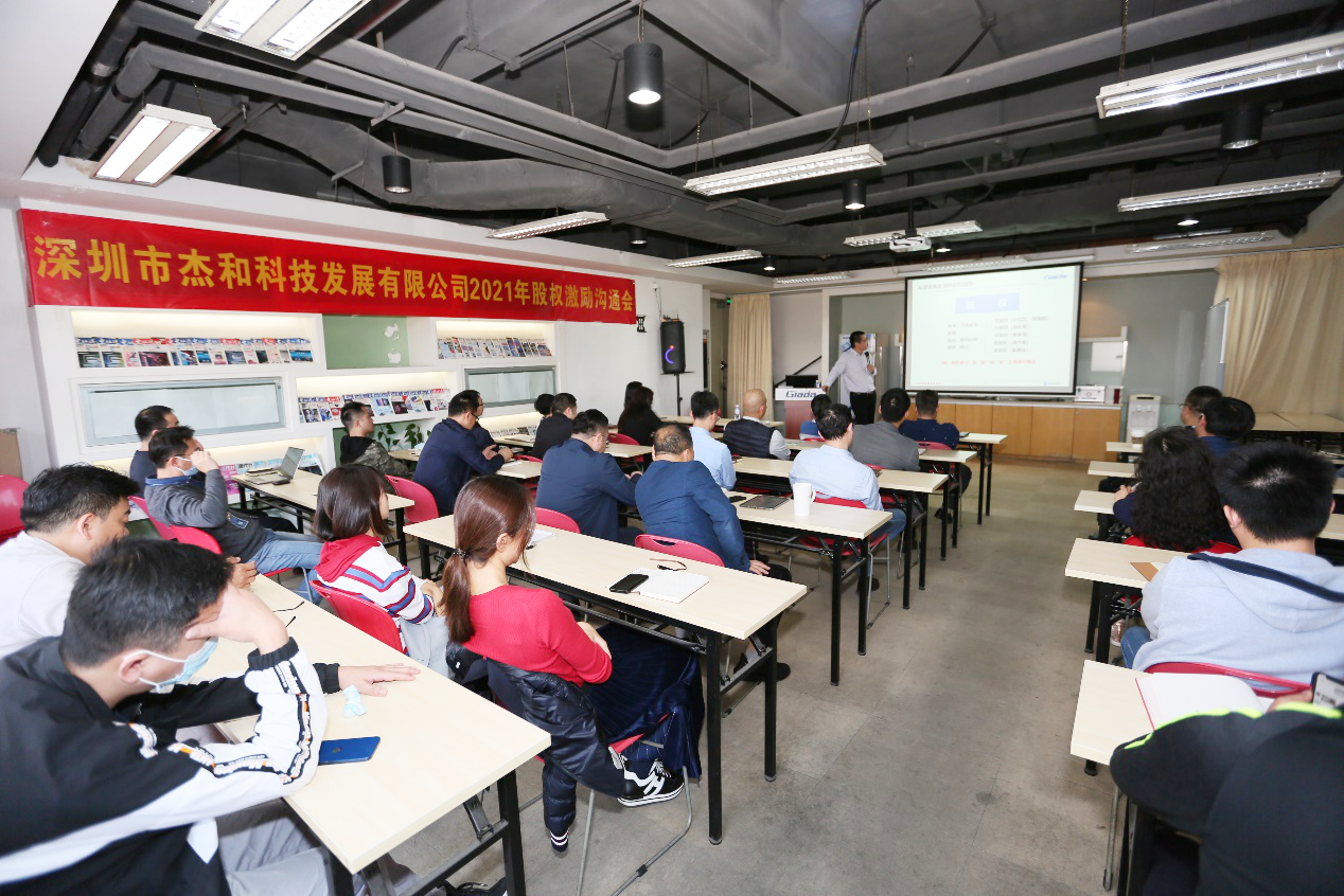 2021年2月5日,杰和科技邀請了來自專注提升資本價值的華揚資本合伙人李總,為公司30多位管理者及骨干員工進行了公司股權激勵制度的專題講解與交流。