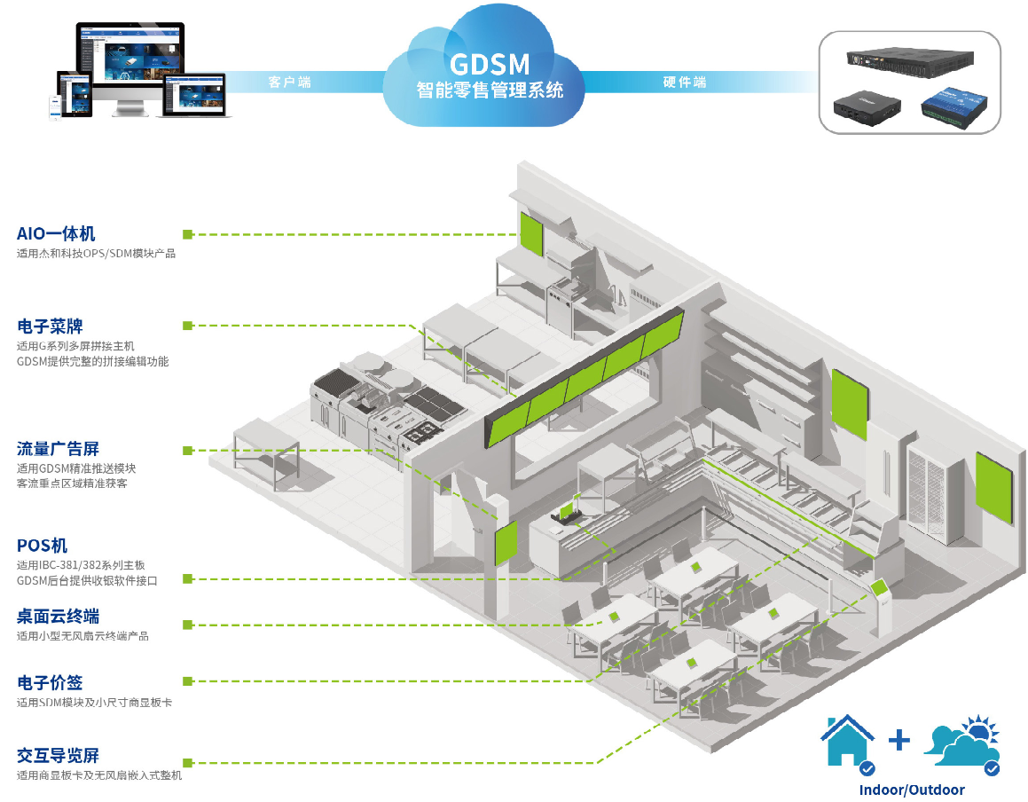 杰和科技GDSM是一套應用于智能零售場景的綜合信息管理系統。整合AI人工智能算法、物聯網技術、大數據捕捉、客戶管理、RTU數據監測、信息發布、軟件多屏拼接功能,利用數據智能多維度賦能零售場景。全面優化消費者消費體驗,提升零售場景綜合管理效率,促進零售產業智慧化轉型。