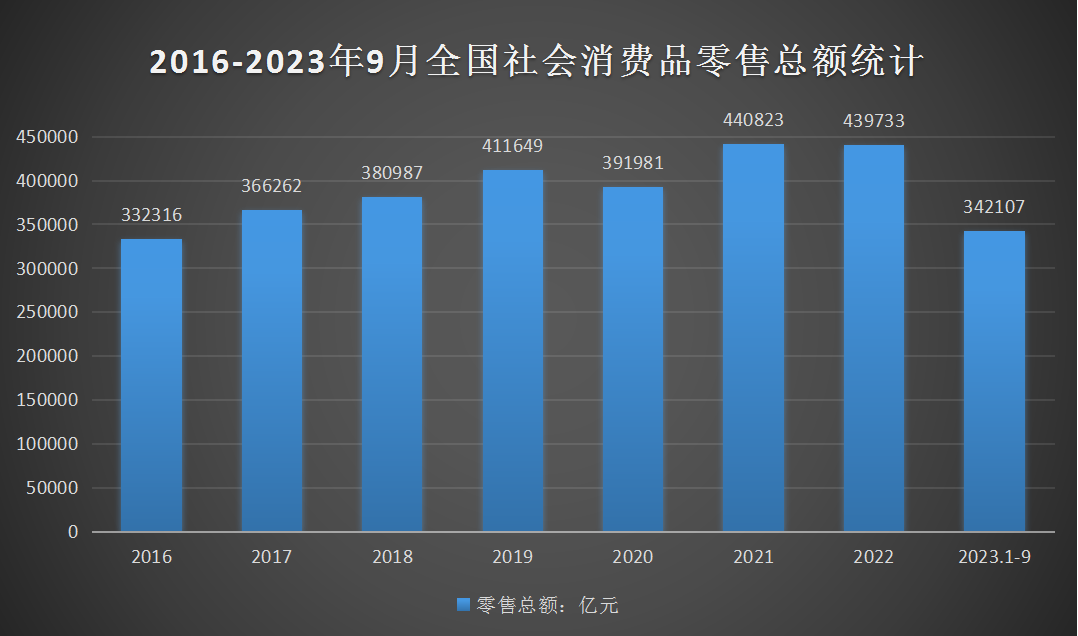 在已經過去的中秋逢國慶“雙節”假期,以及即將到來的“雙十一”狂歡,出行意愿強烈,消費氛圍熱漲,消費活力持續迸發。隨著國家一系列促消費活動的開展,促進零售、汽車、家居消費等政策措施落地,消費對經濟發展的基礎性作用得到增強,呈現持續恢復態勢。據國家統計局最新數據,9月份,社會消費品零售總額39826億元,同比增長5.5%,前三季度,社會消費品零售總額34.2萬億元,同比增長6.8%。特色步行街、重點商圈人氣旺盛,實體零售穩步增長,限額以上百貨店、便利店、專業店、品牌專賣店零售額同比分別增長7.7%、7.5%、4.3%和3.1%。
