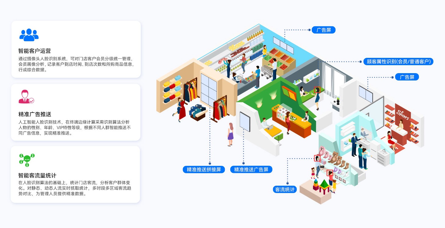 杰和智慧零售解決方案依托杰和GDSM-ES智能零售管理系統,為全球零售門店客戶提供了功能齊全的數字化運營管理工具,提供顯示信息編輯、信息發布、AI識別、客戶分析和會員管理等功能,實現了對設備、內容、營銷、運營的綜合數智化管理能力,為精準運營管理賦能。