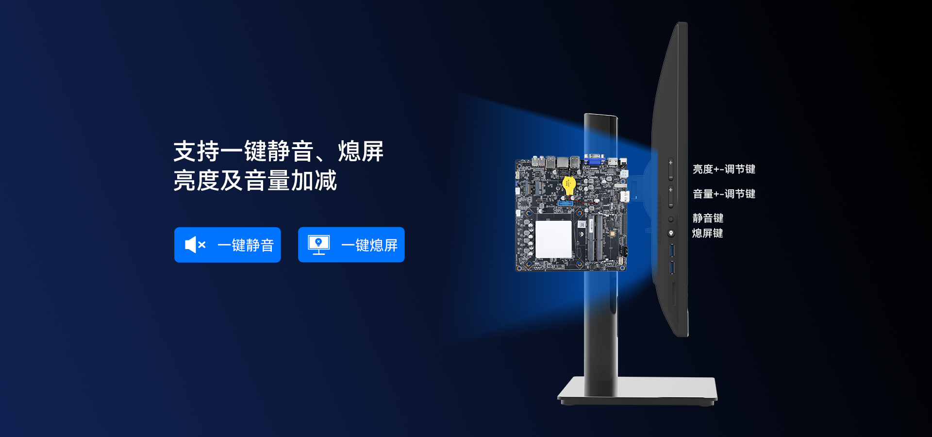 支持硬件一鍵靜音、一鍵熄屏、音量加減、亮度加減